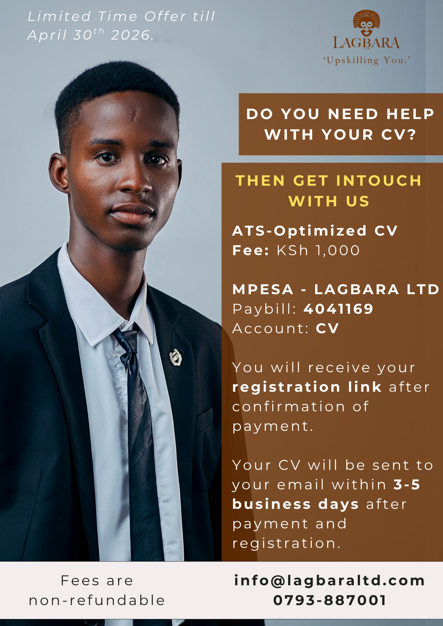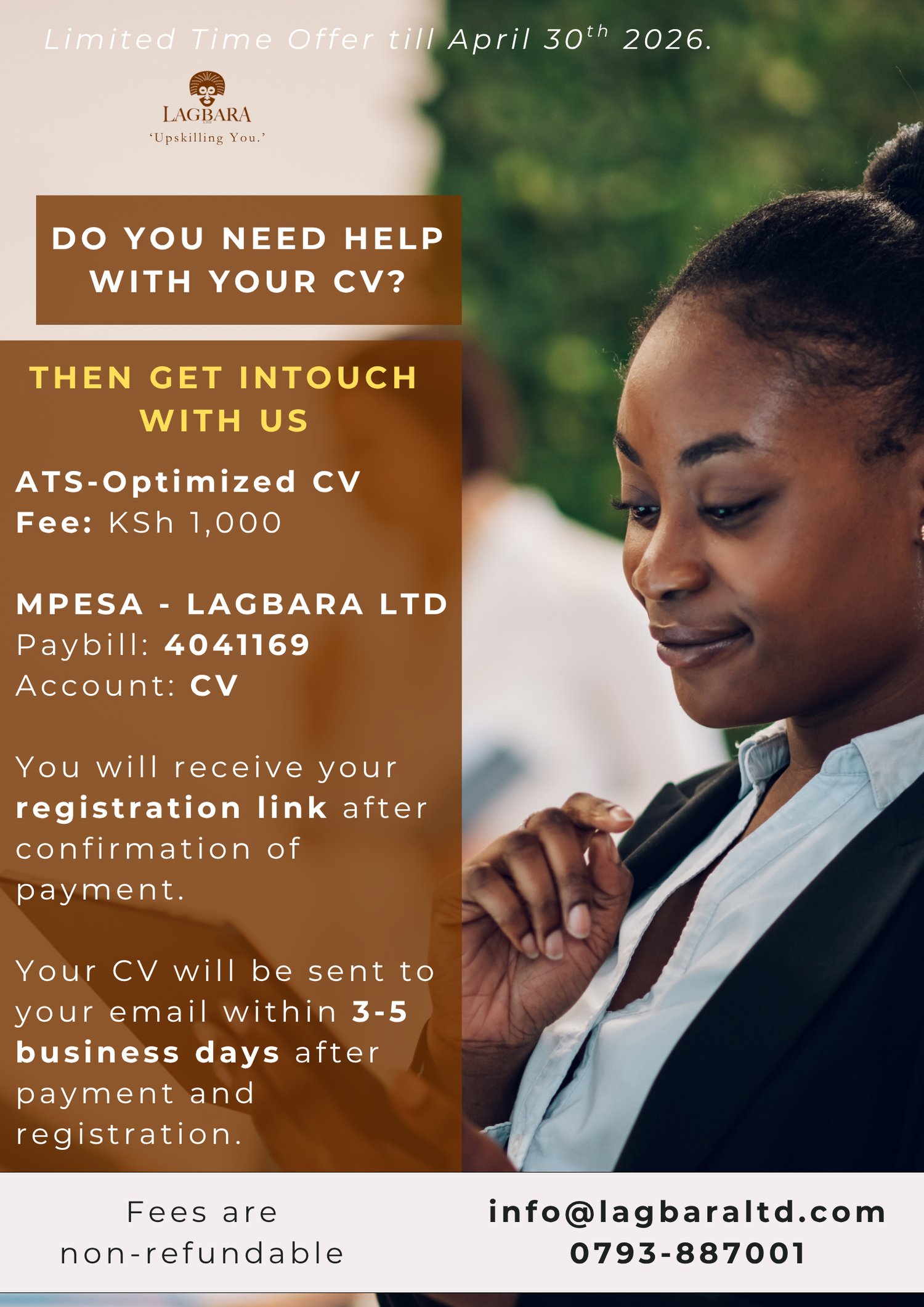 Get an ATS-Optimised CV at only KSh 1,000 for a special one time offer till the end of April 2026.
